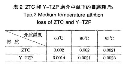 结果表明:ZTC磨介随温度的变化磨耗基本上恒定不变,而Y—TZP材料在低于6O℃的情况下,性能较好,但随着温度的提高,磨耗提高较快。在实践应用中,厂家也有类似的定性结论,Y—TZP厂家在对磨耗的fl呆证中必须说明在多少温度以下,而ZTC厂家则无限制工艺条件。