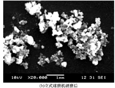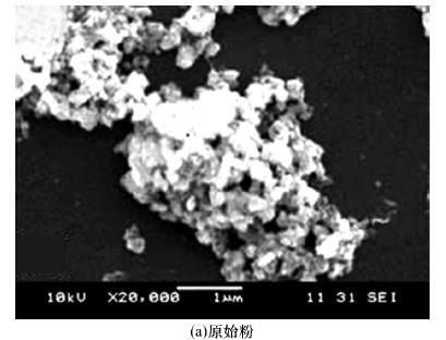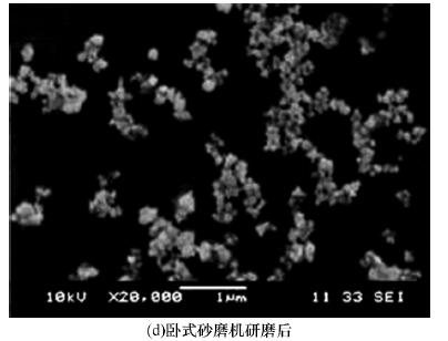 原始氧化锆粉以及经不同研磨设备研磨后氧化锆粉体的SEM 照片见3。