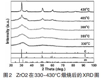 从图2中,当煅烧温度低于380°C时,在2