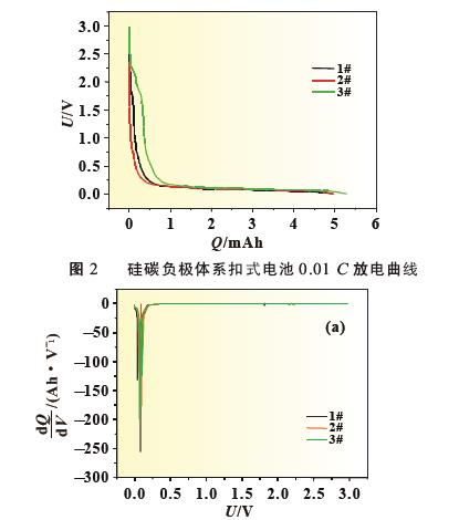 SiO-C/Li 扣式半电池以0.01 C 恒流放电, 截止电压为0.005 V,静置10 min。