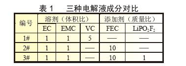 本文针对硅碳负极材料的特性, 考察了不同电解液组分在其表面的成膜作用及机理。通过对电池容量的标定可以看出,硅的加入可以有效地提高负极比容量,含有5% SiO 负极实际比容量可以达到395.73 mAh/g。LiPO2F2+FEC 的添加剂组