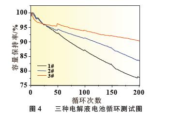 鉴于3# 电解液成膜开始电位最早,成膜峰面积最大,因此推测3# 电解液中LiPO2F2+FEC 的添加剂组合在硅碳负极表面进行的成膜反应最完全、成膜最致密,电极表面SEI 膜包覆良好,因此循环寿命更长。循环性能推测依次为含有FEC 的2#电解液,以及1# 电解液。