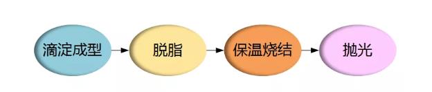 备注:上述步骤1中的氧化锆粉料为钇稳定氧化锆粉(氧化钇重量含量约5%)或铈稳定氧化锆粉(氧化铈重量含量约为6-20%)。混合胶由0.1-15%(重量)聚乙烯醇、84.9-99.5%(重量的)石蜡和0.1-5%(重量)的油酸配制而成。氧化锆与混合胶的重量比例为(60-90):(10-40)。冷却液由煤油、油酸和调和剂组成,调和剂可以是密度为06-1.2g/cm3的油类物质,用来调节冷却液的密度及粘度,可以是汽油、柴油、植物油或这些的组合。在上述氧化锆粉与混合胶混合之前,需要先对氧化锆粉料进行表征处理,表征处理的目的是士粉料在微观上达到均匀,宏观上复合滴淀成型所需的颗粒状态。
