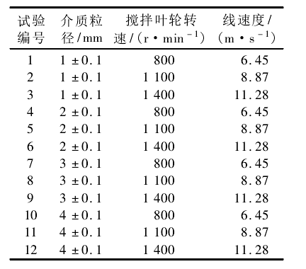 研磨球及试验条件所用研磨球为叁鑫新材料的高铝陶瓷球,经测量,其堆密度为 2 160 kg /m3。所有磨矿试验研磨球填充率为 60% ,磨矿浓度均设置为 40% ,试验变量为研磨球球径及搅拌器转速,试验条件安排见表 1。