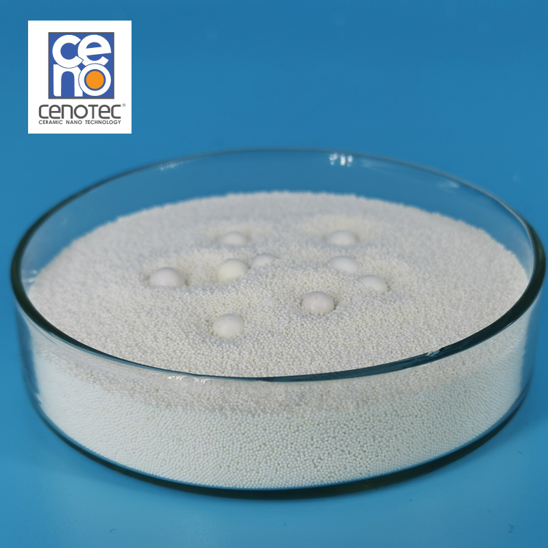 复合锆珠与氧化铝球相比,由于复合锆珠是氧化锆和氧化铝的复合形态,氧化锆的成分使复合锆珠更加有韧性,相比于氧化铝球结构更紧密。复合锆珠内外一致,球形度高,磨耗低。