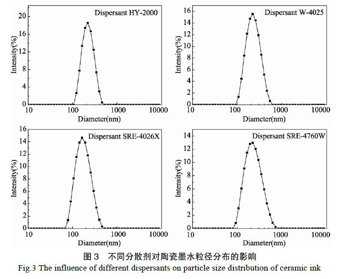 2.4分散剂陶瓷墨水粒度的影响